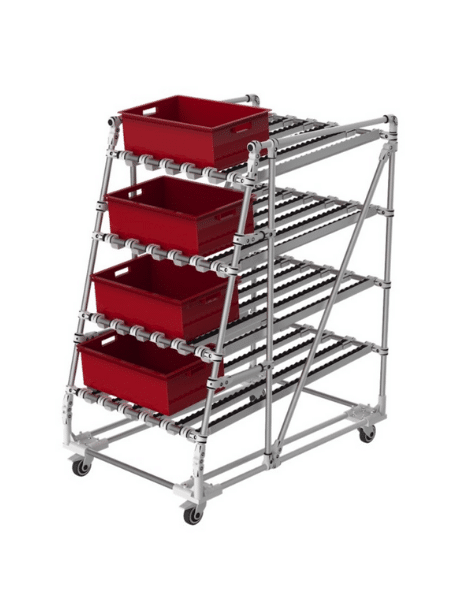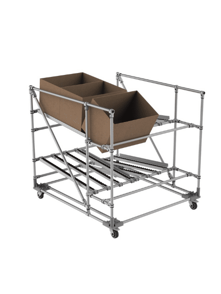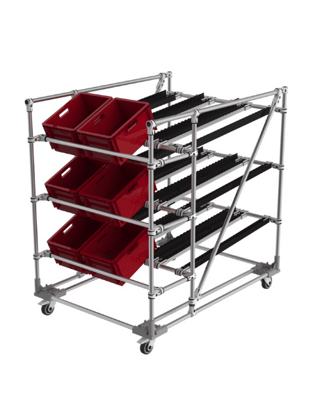 Optimisez votre espace de stockage et la préparation des commandes grâce à nos rayonnages d’approvisionnement dynamiques. La structure en tubes d’acier lui confère une résistance élevée aux charges et aux chocs.